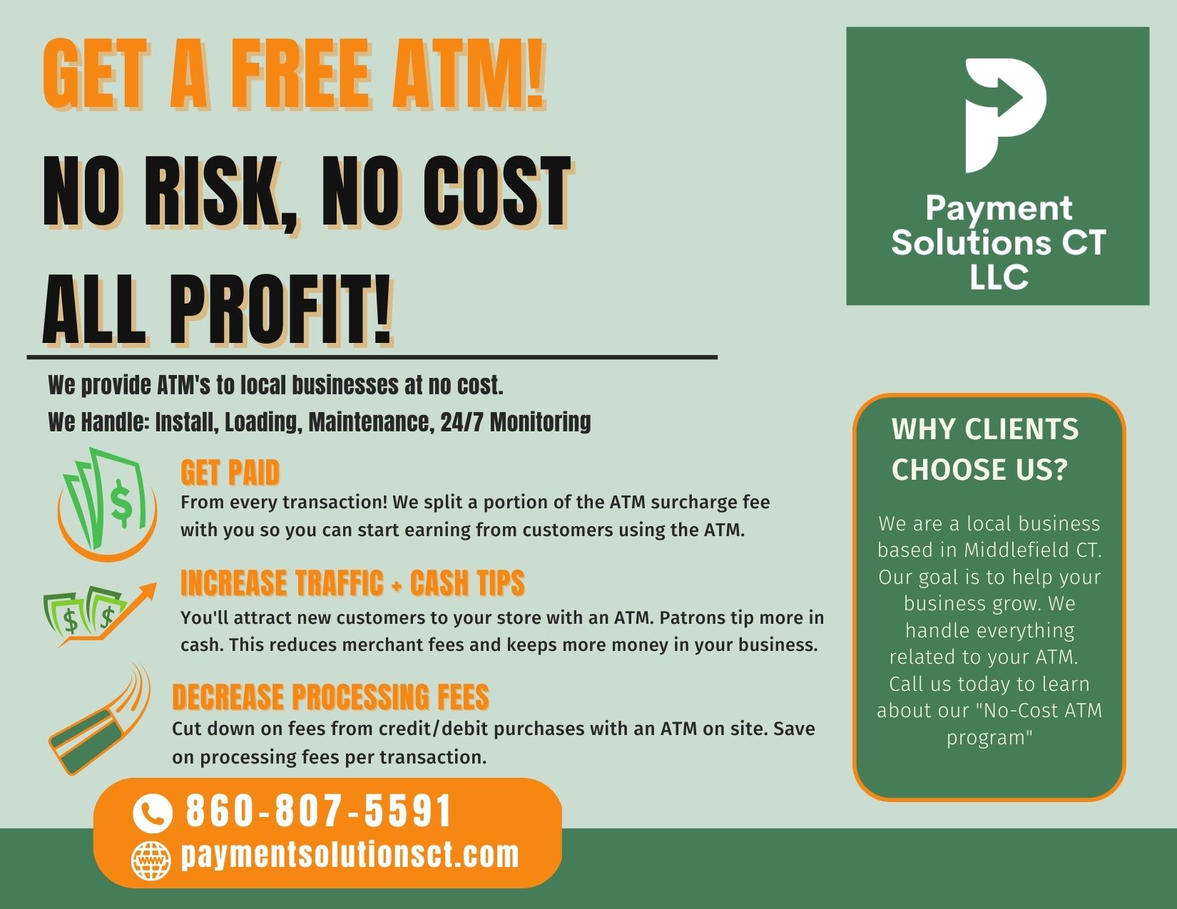 We have established relationships with multiple ATM processors, ensuring backups with a 99.99% up-time, which guarantees happy customers, and ultimately, happy clients. At Payment Solutions of CT we believe in mutually beneficial partnerships, and we are committed to making your day successful.